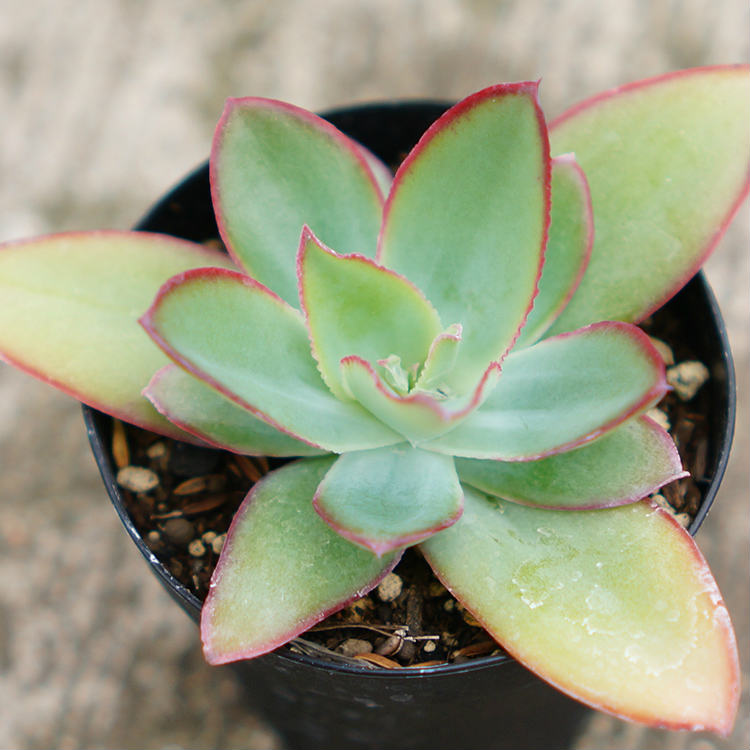 バークレー錦(Berkeley f.bariegata)は冬季にはピンク色に染まる内側にクルッと巻いたフリルが可愛い品種。購入して葉挿しを行ったりしながら栽培しています。